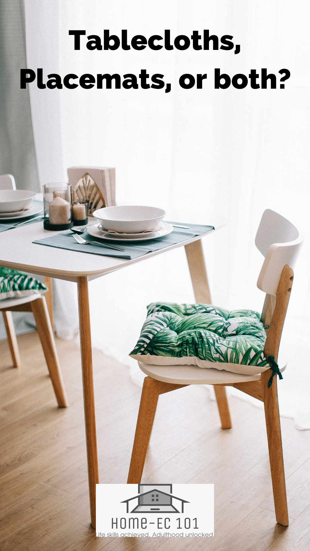 Typically, placemats are for everyday use, while tablecloths are used in more formal settings. Lisa used plastic placemats when her son started eating table food as he loved nothing more than smearing his food everywhere. She would scrape the mat and stick it in the sink for a good scrub. Tablecloths can also be used for informal events when you really want to style your table and let loose style-wise.