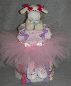 Here are a couple of other examples of diaper cakes that would be in the $100 range (the one already pictured is also in the same price range):