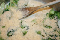 In a small bowl stir together the parmesan and flour. I use whatever I have on hand, sometimes I have a Parmesan / Romano blend and that works fine, too.