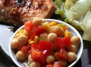 My sister recently told me that Bean and Corn salad is also great served with chips, as you would use a salsa. She was right. If you are intending to use it as a salsa, you’ll want to finely chop the peppers and onions and use black beans or another variety on the smallish side.