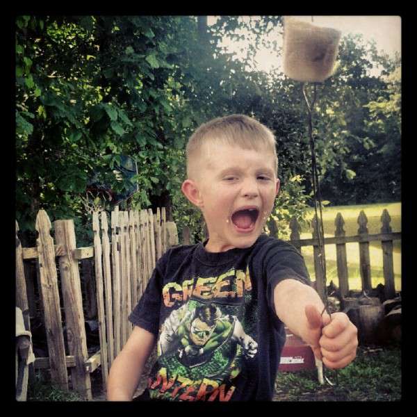What do you get when you combine: a breezy Sunday afternoon, seven children eight and younger, a backyard, a fire-pit, marshmallows, graham crackers, and HERSHEY’s Milk Chocolate Bars?