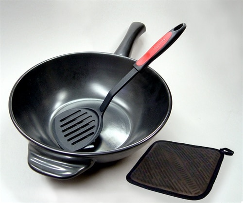 One of the biggest complaints I hear about enameled cast iron is the weight. Have you ever gone to pick up a full container and almost thrown it or lost your balance because it turned out to be empty? I had the same experience. I own a few enameled iron pieces. I went to pick up the wok and nearly sent it flying because it was so much lighter than I expected. Don’t worry, this only happens once or twice. - Even heat distribution